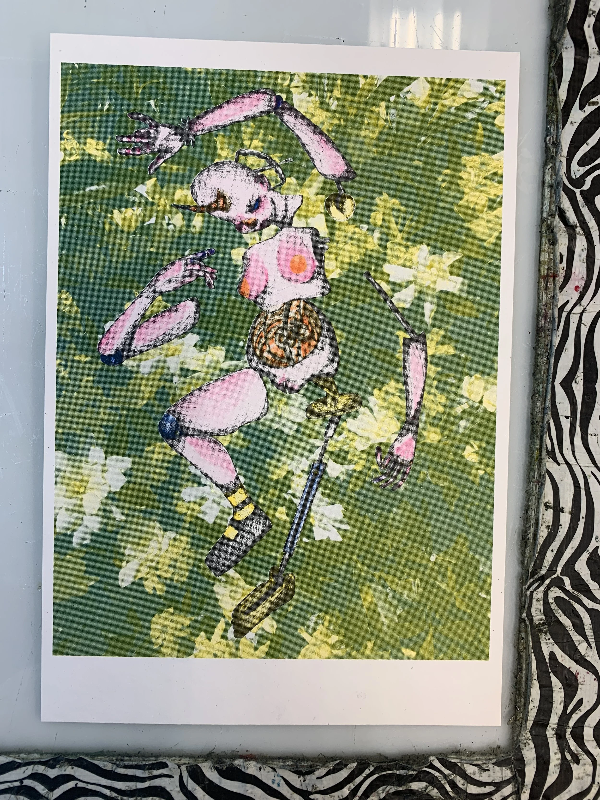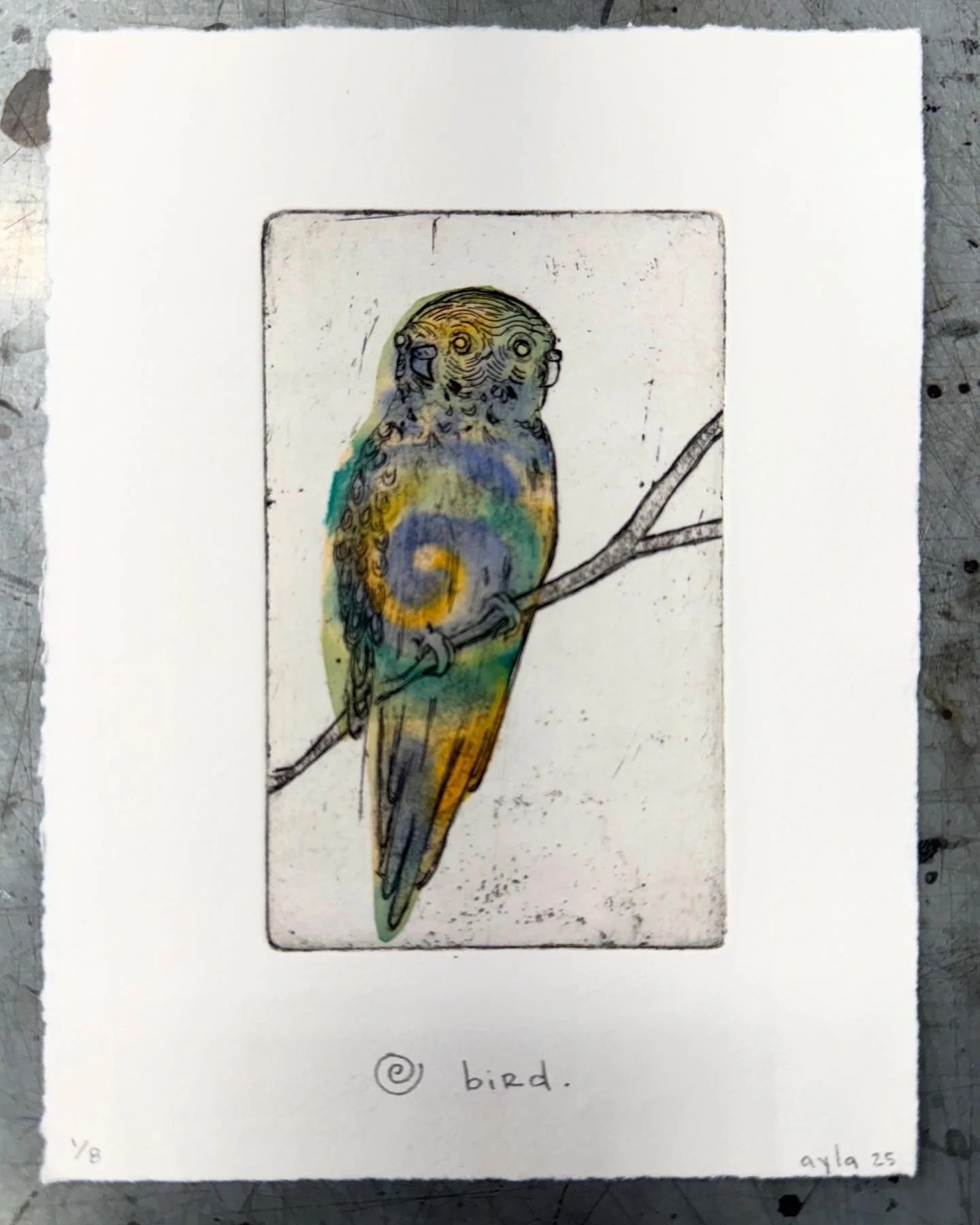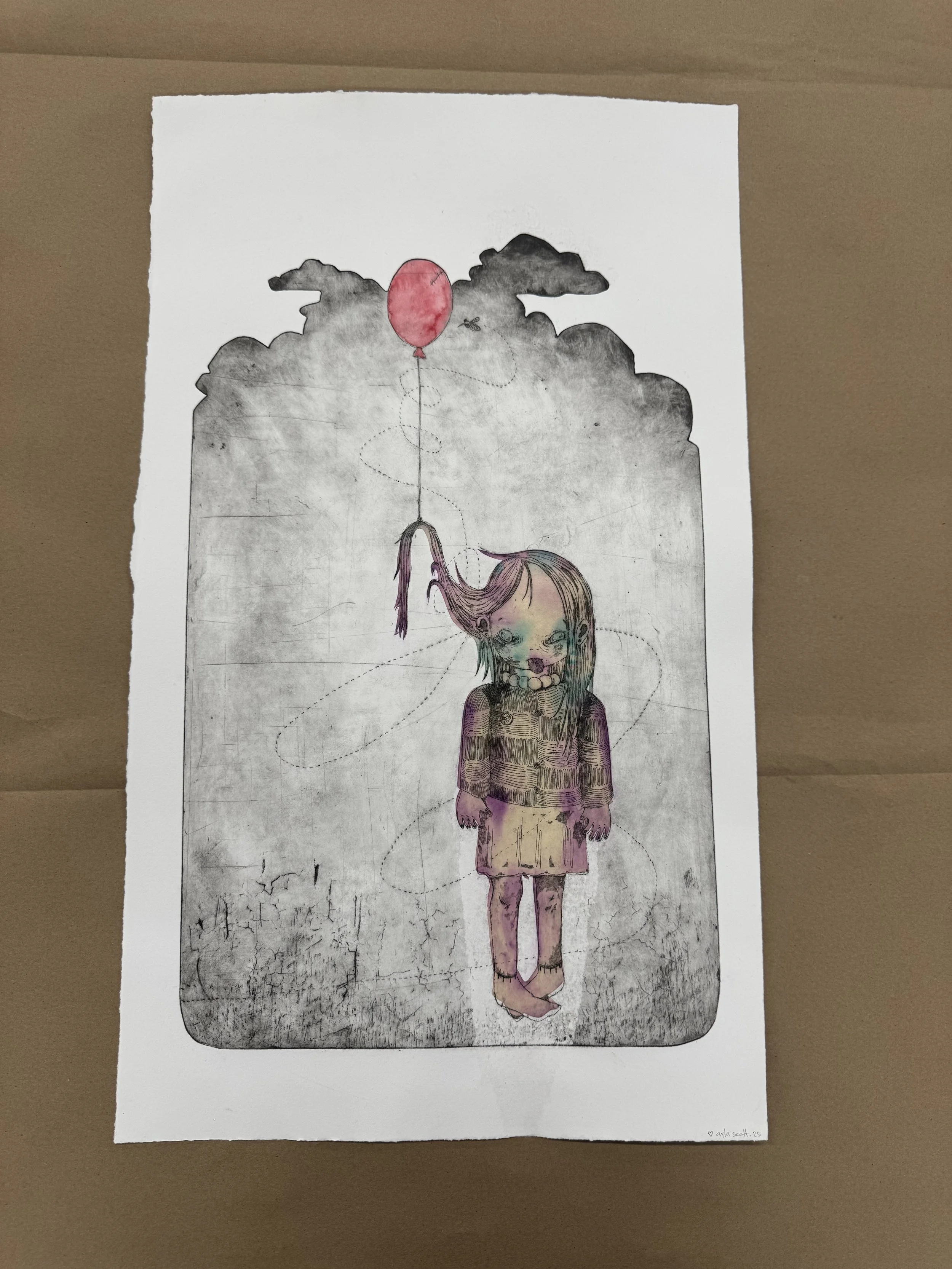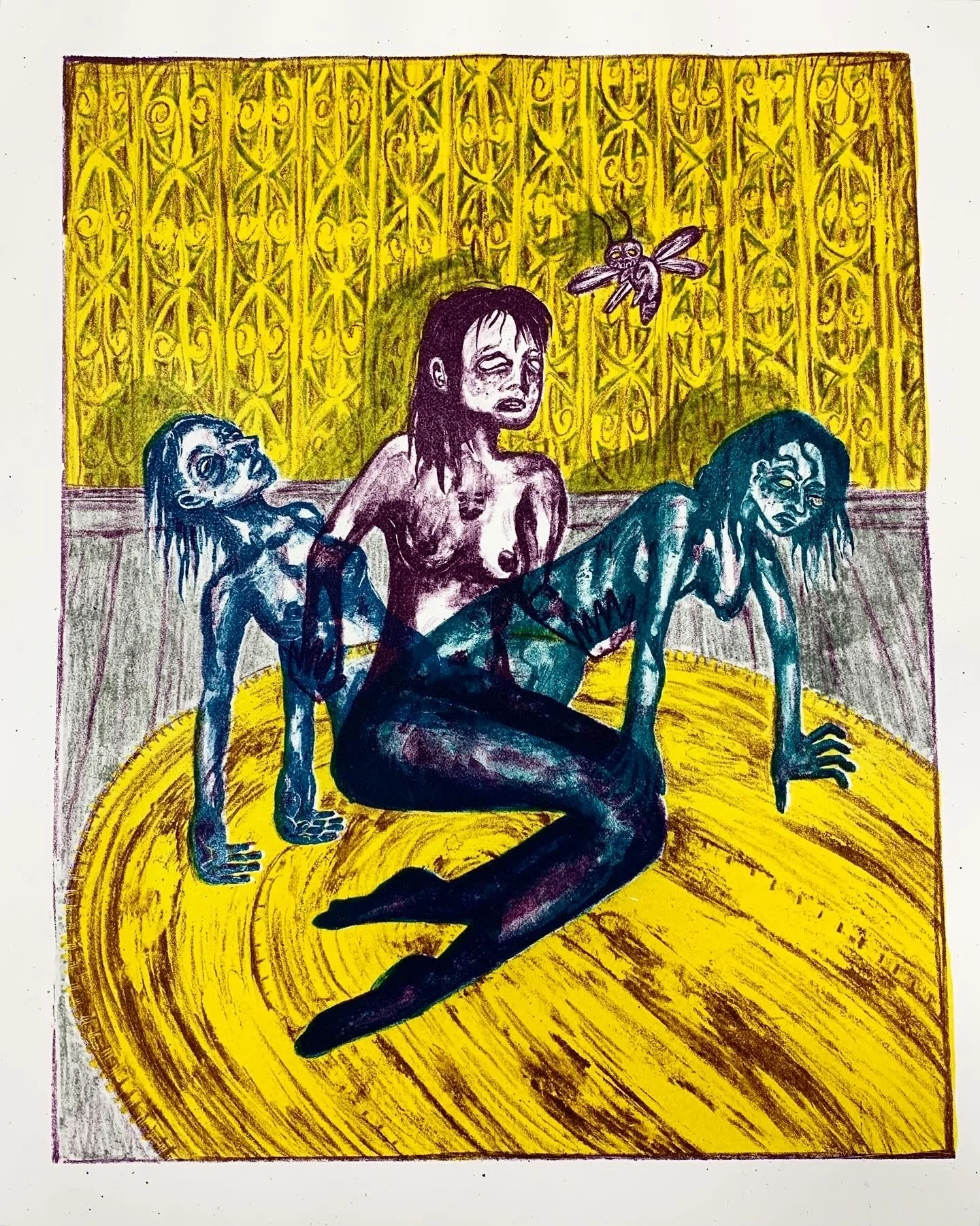 using a range of printmaking technics including relief, stone and plate lithography, offset, and etching.